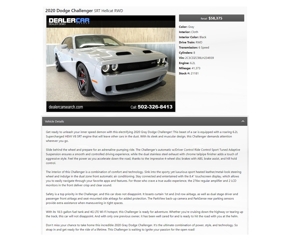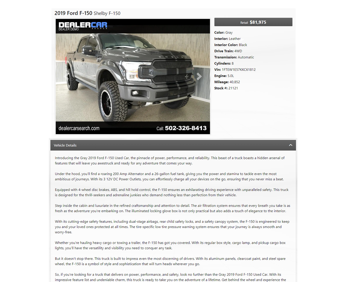 Ready to revolutionize your dealership's online listings? Contact our team to learn more about AI Generated Vehicle Descriptions and how it can elevate your business. Say goodbye to time-consuming descriptions and hello to AI-powered efficiency! Your customers will thank you, and your sales will soar!