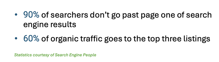 We'll start with an initial review of your website and online presence to determine the best path to success. After that, we will make initial optimizations to your website's metadata and on page content, along with verifying your Google My Business, and then resubmit your site for indexing. From there, we will continue to update your website monthly with relevant keyword-rich blog posts or any additional optimizations as needed.